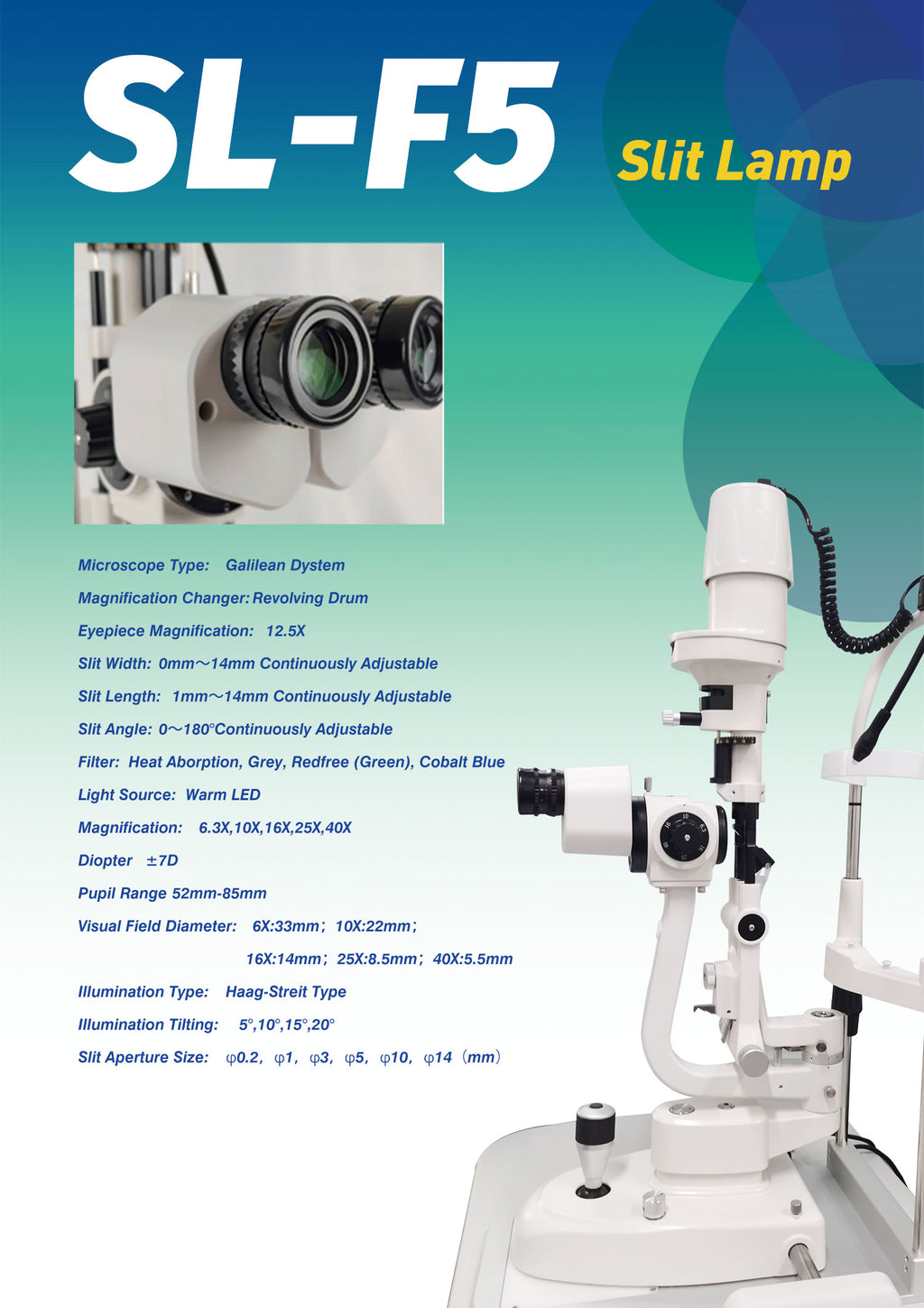 The New Clinical LED Slit Lamp SL-R5, a Galilean optics system yields a sharp image, which provides a clear field of view, powerful LED illumination for optimum color rendition and Illumination.